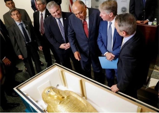 The gilded coffin was looted and smuggled out of Egypt in 2011.